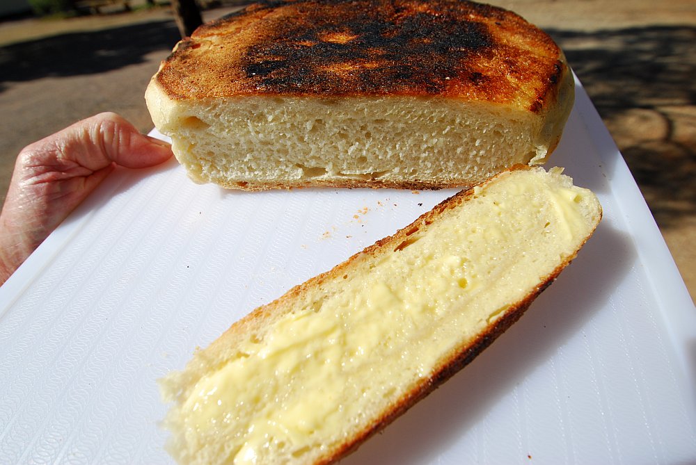 Well, we're camped in the Big4 caravan park at Hawker which is a small, outback town in the Flinders Ranges, South Australia. No oven in our van and I hadn't yet discovered the camp kitchen so I decided to try baking a loaf of bread on the barbecue plate.
